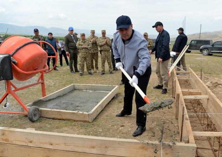 During visit to the Batken region, Kyrgyz president also laid a capsule for the construction of a cantonment in the Leilek district.