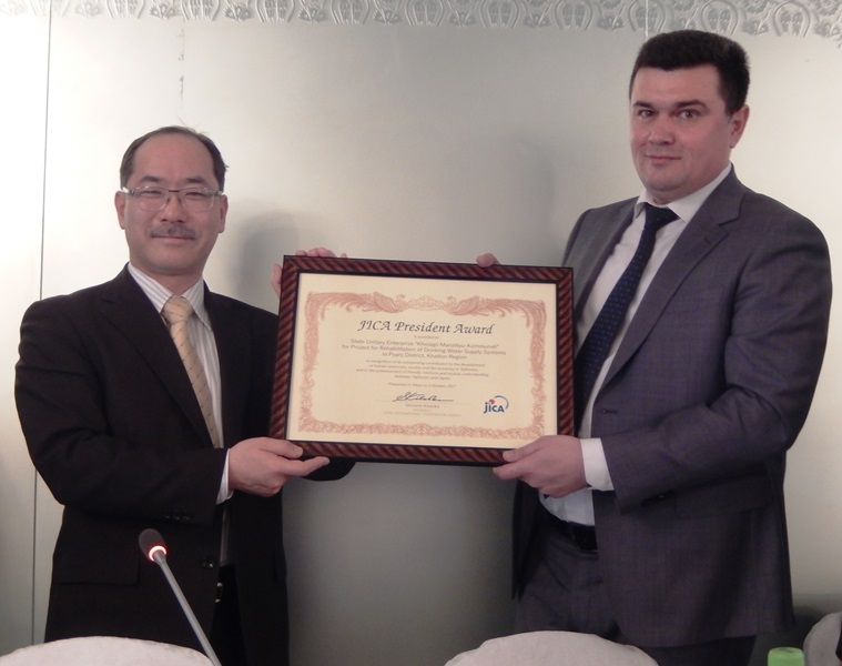 The State Unitary Enterprise Khojagii Manziliyu Kommunali (KMK — the state holding company for public utilities) has received JICA President’s Award.