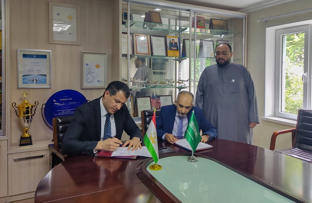 Tajikistan’s privately owned air company Somon Air and Saudi air travel agency Kayan Travel Group have signed a memorandum of understanding to develop Dushanbe-Jeddah service and attract passengers from Saudi Arabia to Tajikistan.