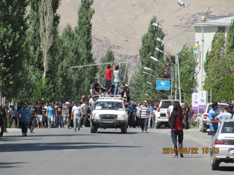 DUSHANBE, August 23, 2012, Asia-Plus — Several thousand people gathered outside the Khorog mayor’s office yesterday morning.  The crowd massed in the city after news emerged of the slaying of the former field commander Imomnazar Imomnazarov.