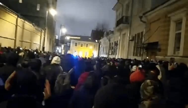 Hundreds of people gather to a protest at the Tajikistan Embassy in Moscow
