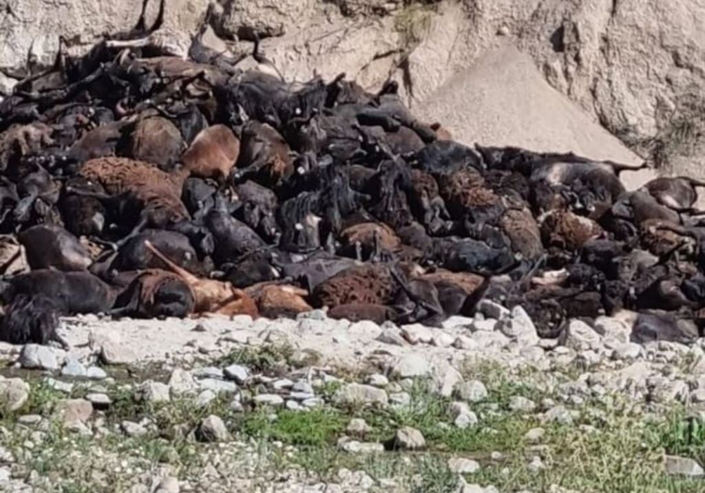Hundreds of sheep died falling into an abyss in Shahrinav district, not far from Pariyon Lake area in the Qaratogh Gorge, about 70 kilometers west of Dushanbe.