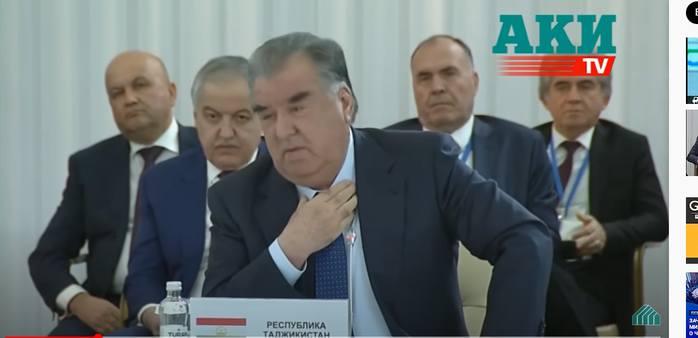 At one point, Kazakh President Kassym-Jomart Tokaev reportedly asks him to stop, but Rahmon refuses, saying, "We came to talk."