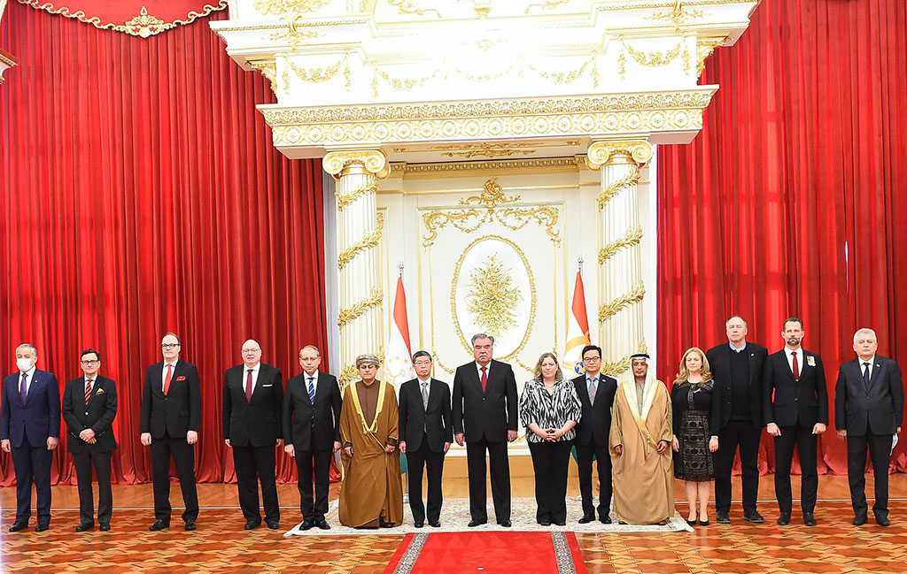 Twelve newly appointed ambassadors presented their credentials to Tajik President Emomali Rahmon on March 2, 2022.