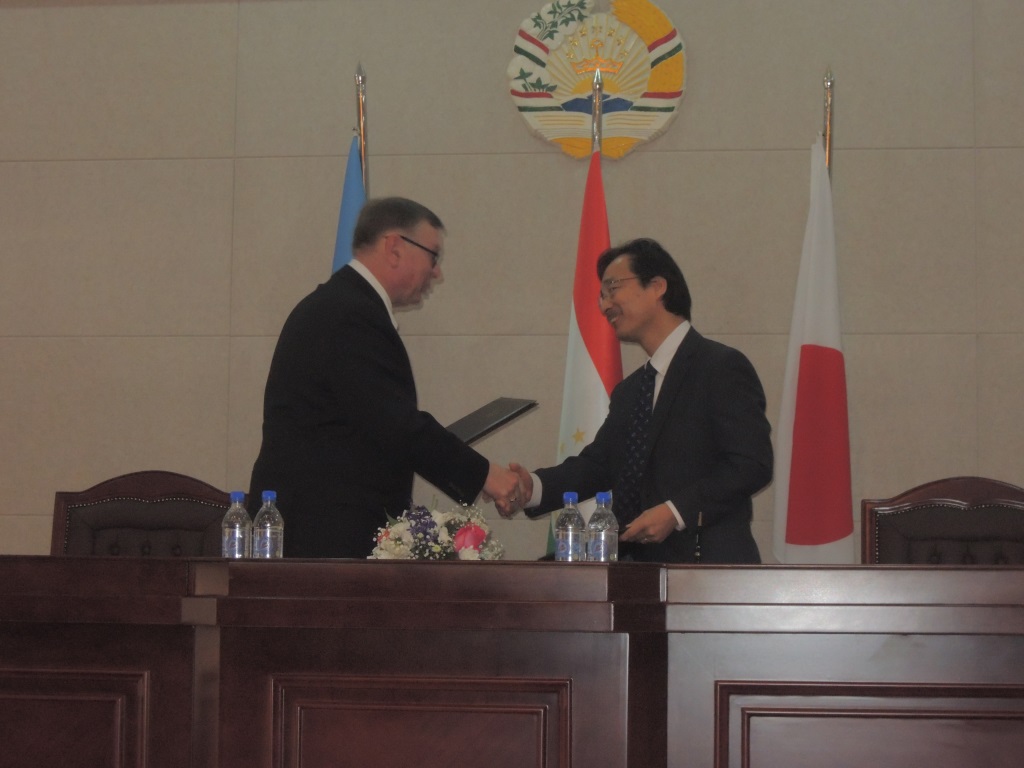 Based on the Exchange of Note, Mr. Ishii Kiyoshi, JICA Tajikistan Office Resident Representative and Mr. Zuev signed the Grant Agreement on the implementation of the said project. And also the Project Document was signed by Mr. Sirojiddin Aslov, Minister of Foreign Affairs of Tajikistan and Mr. Zuev accordingly.