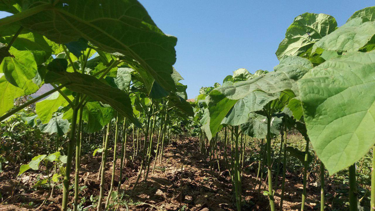 Paulownia is also used in Chinese agroforestry systems because it grows fast, its wood is light but strong, its flowers are rich in nectar, its leaves make good fodder for farm animals, it is deep-rooting, and it is late-leafing and its canopy is quite sparse so that crops below it get both light enough to grow and shelter.
