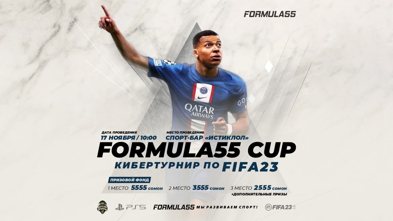 В преддверии Чемпионата Мира по футболу-2022 в Катаре, Первая национальная букмекерская компания "Formula55" для любителей киберспорта проведет очередной кибертурнир — "Formula55 CUP" по FIFA 2023.