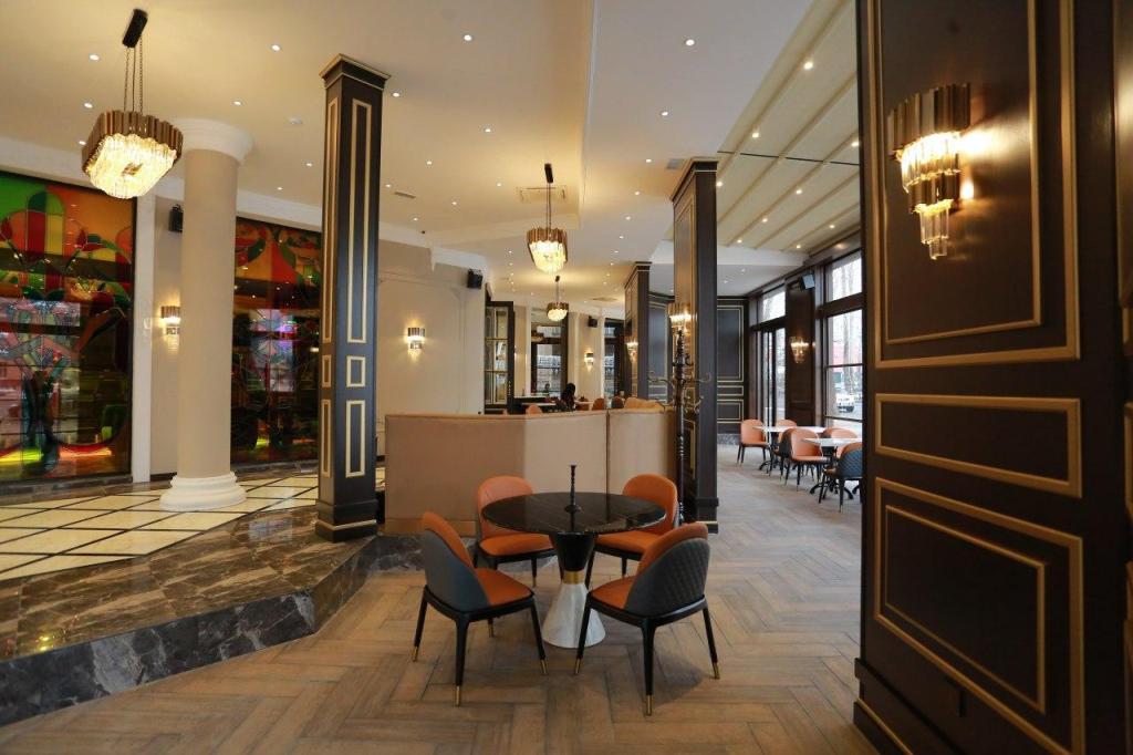 Ресторан отличается богатым интерьером, до мелочей продуманным дизайном, разделением на зоны. Но главным отличием рестобара будет обслуживающий персонал, который в течение нескольких месяцев был обучен профессионалом и руководителем российской школы сервиса Сергеем Бабаличем.