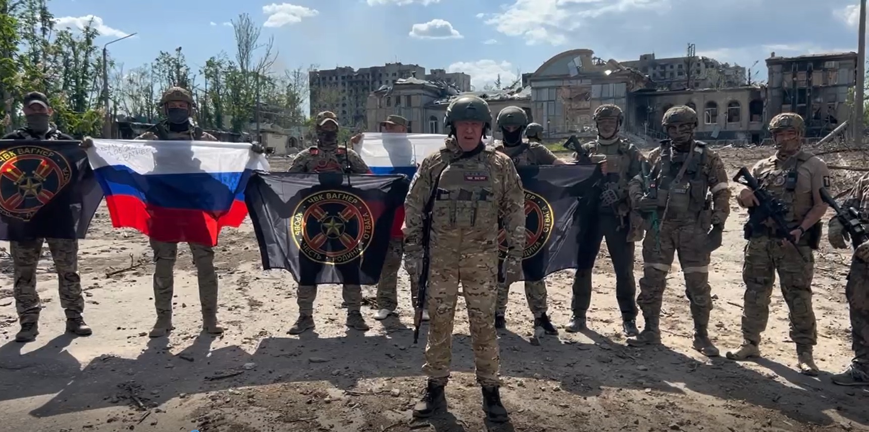Основатель ЧВК «Вагнера» Евгений Пригожин заявил о взятии Бахмута в Донецкой области, бои за который шли с июля 2022 года. 20 мая Пригожин опубликовал видео, где он с бойцами ЧВК стоит на фоне разрушенных кварталов города. Через несколько часов его пресс-служба также опубликовала кадры водружения флагов на зданиях в разных районах.