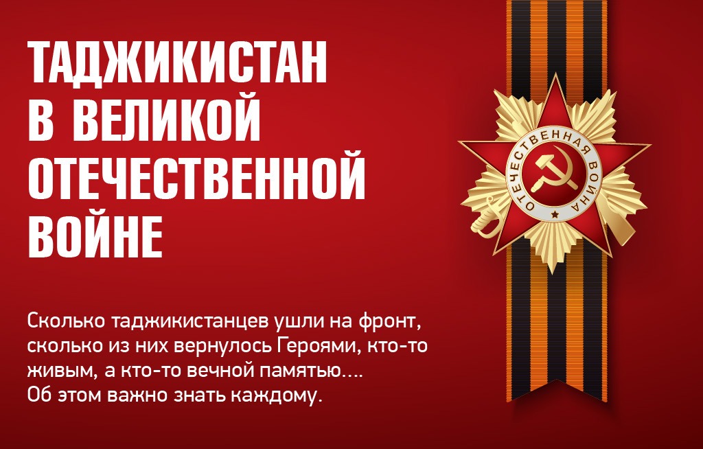 Около 300 тысяч выходцев из Таджикистана ушли на фронт в 1941-1945 годах. Тогда население республики составляло около 1,25 миллиона человек. Около 100 тысяч из них пали в боях. 55 тысяч бойцов были награждены орденами и медалями, 64 воина получили высшее звание — Героя Советского Союза.
