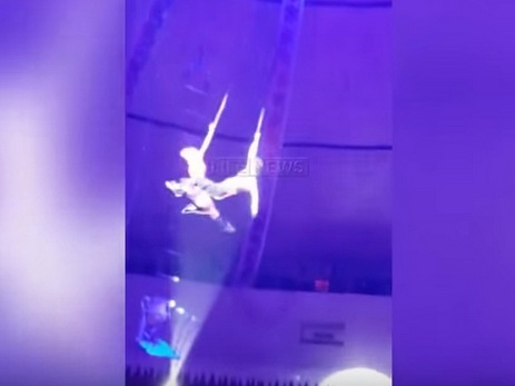 В распоряжении LifeNews оказалось видео с падением циркачки на арену во время выполнения трюка. Как видно на кадрах, девушку не удержал ее напарник — они исполняли совместный номер.