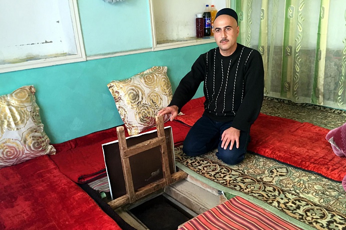Это небольшое углубление в глиняном полу посреди комнаты для горячей золы. Древесный раскаленный уголь набирают в железное корыто и вставляют в сандали, над которой устанавливают столик, накрытый толстым ватным одеялом. Вся семья собирается вокруг сандали, греется, пьет чай с лепешками. А чтобы было теплее, ноги ставят в углубление, а сверху накрывают ватным одеялом. Таким нехитрым способом в древние времена сельчане грелись и обогревали свой дом в суровые холода. Да и в наше время в некоторых отдаленных кишлаках зимой температура может опускаться до двадцати пяти градусов ниже нуля.