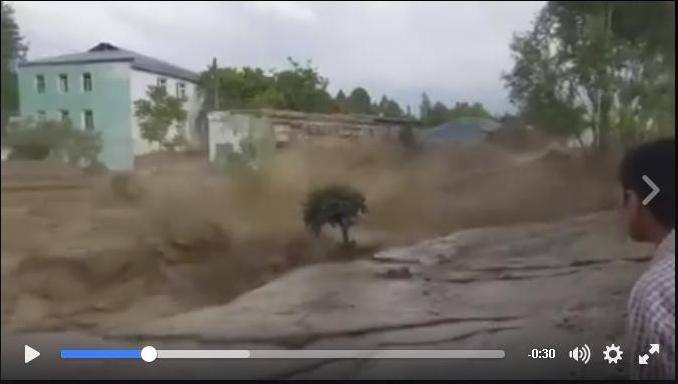 В сети интернет пользователи выложили видео, сделанное во время схода мощного селевого потока в Пенджикенте на севере Таджикистана. Сель обрушился на Согдийский регион 9 мая после проливных дождей.
