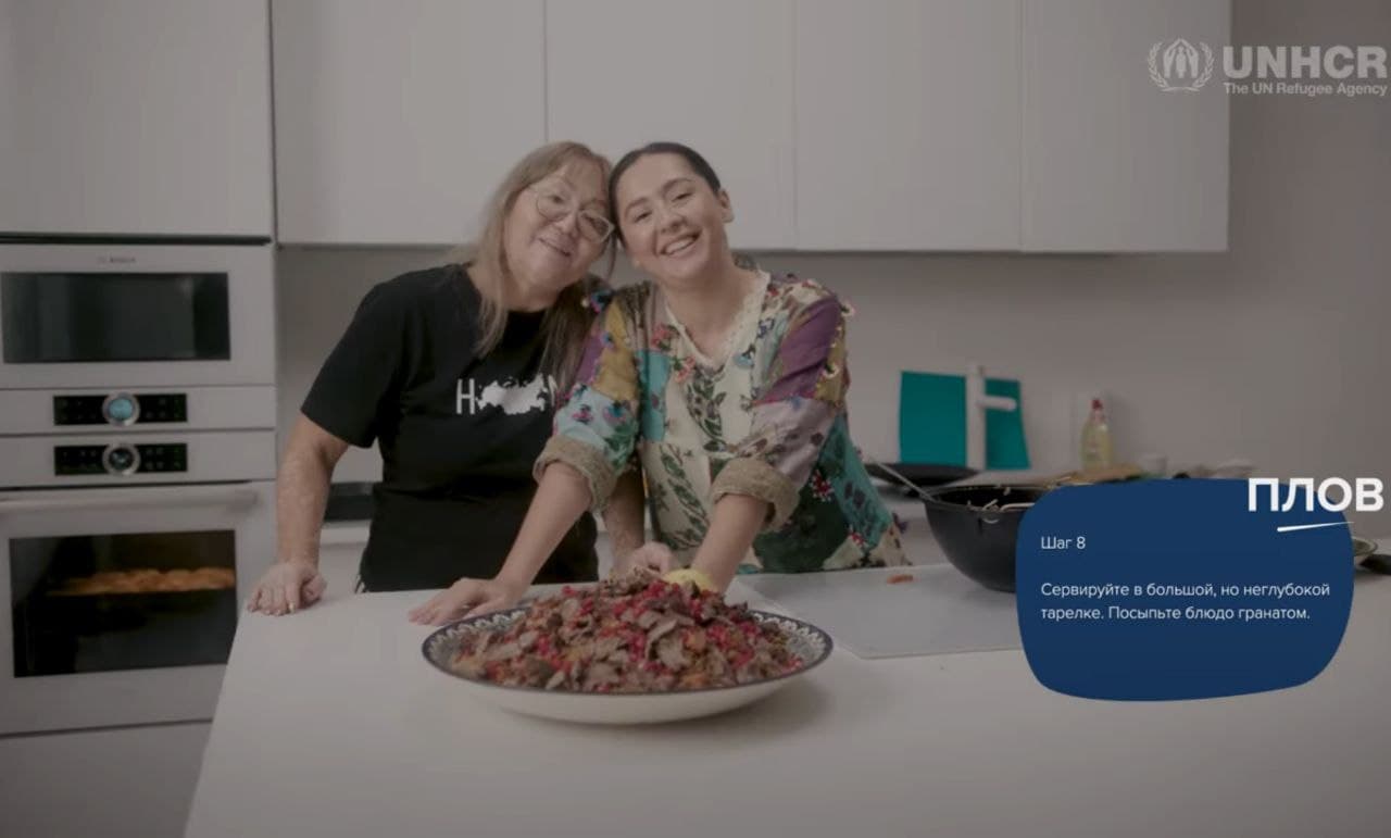 В рамках кулинарного проекта ООН по делам беженцев, Манижа, которая является послом доброй воли, вместе со своей мамой Наджибой приготовили традиционные таджикские блюда – плов и самбусу.
