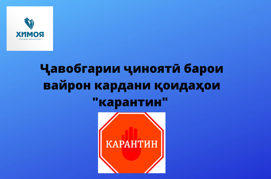 Ҳамин тариқ, агар шахс сарҳадро убур карда, аз карантини ҳатмӣ саркашӣ кунад, вай бояд мутобиқи моддаи 112 Кодекси ҳуқуқвайронкунии маъмурии Ҷумҳурии Тоҷикистон ба ҷавобгарии маъмурӣ кашида шавад.
