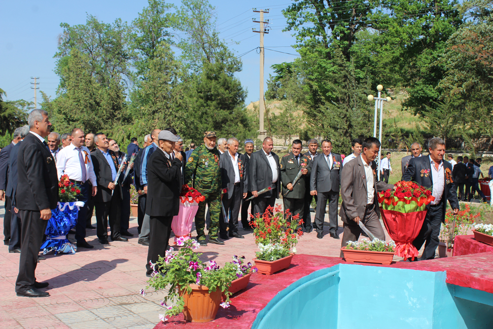Зимни суханронӣ дар ин чорабинӣ муовини раиси шаҳр Искадар Абдуллозода қаҳрамонии тоҷикистониён дар мубориза зидди фашизмро қайд намуда, изҳор дошт, ки «имрӯз мо ба онҳо, ки ба ивази ҳаёти худ ба мо сулҳу озодӣ аз фашизмро таъмин сохтанд, сари таъзим фуруд меорем ва қаҳрамонии онҳоро ҳеҷ гоҳ фаромӯш намекунем».