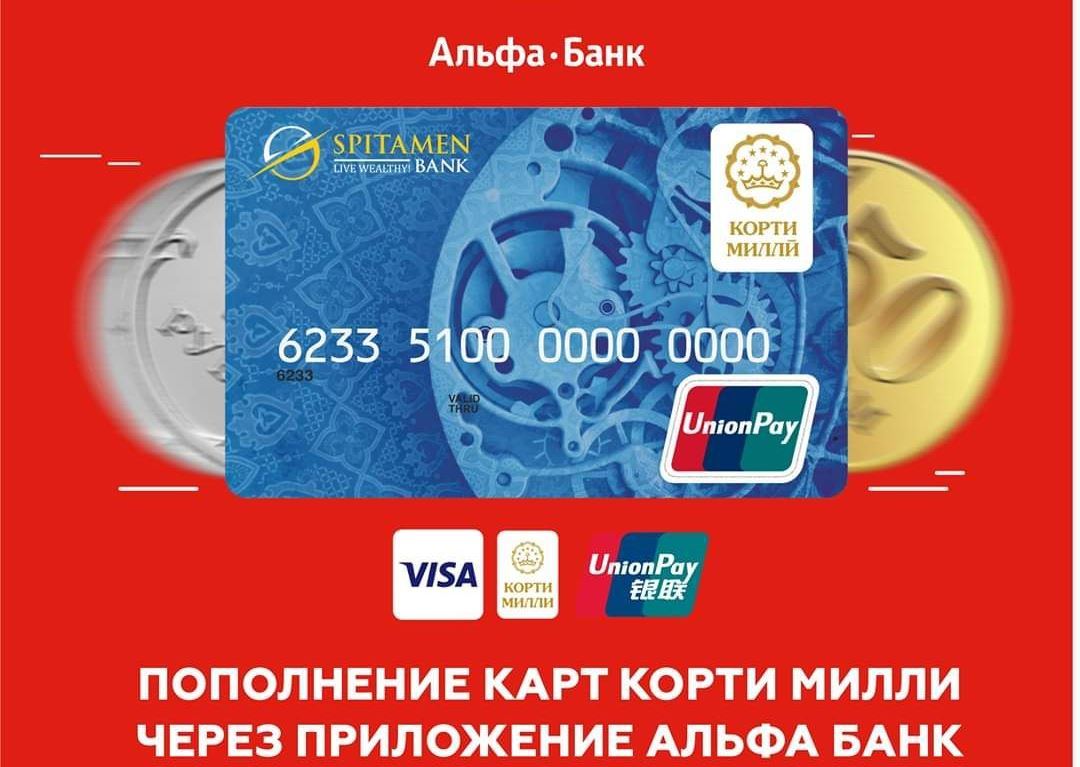 Дорандагони кортҳои бонкии низоми миллии пардохти Корти миллии ҳама гуна бонки Тоҷикистон ва кортҳои низомҳои байнулмилалии UnionPay ва VISA, ки аз ҷониби “Спитамен Бонк” бароварда шудааст, тавассути замимаи “Альфа-Банк” (Русия) пулҳои интиқолёфтаро дастрас карда метавонанд.