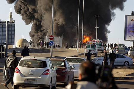 Дар рӯзи ба хок супурдани ҷасади раҳбари пешини Либия Муаммар Қаззофӣ дар зодгоҳи ӯ – шаҳри Сирт, ки дар канораҳои он ӯ боздошт ва ба қатл расонида шуд, як инфиҷори шадид ба вуқӯъ пайваст.