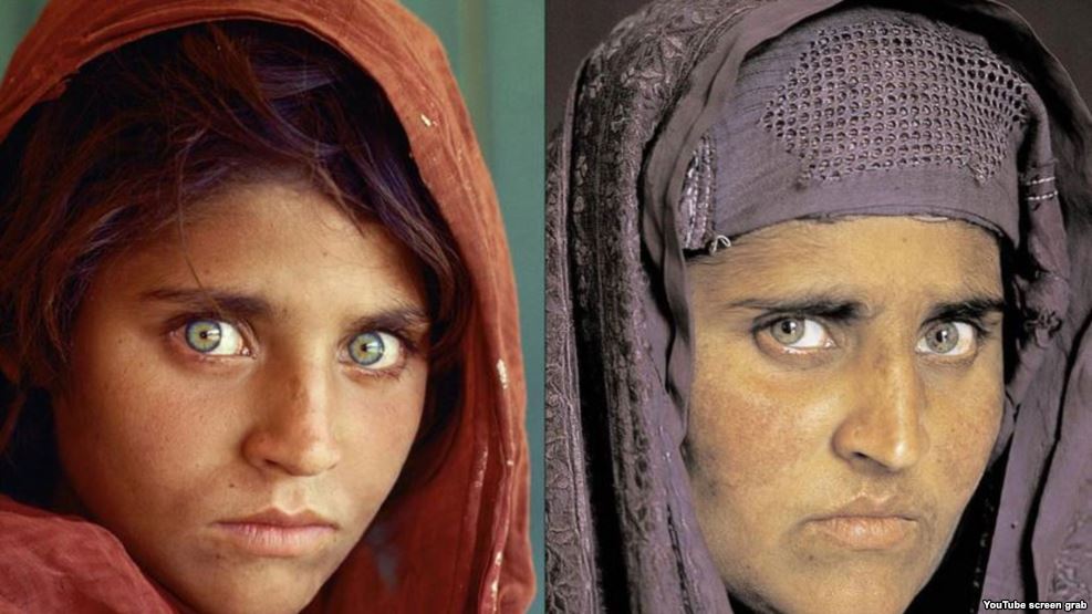 Ин зани афғон баъди нашри як аксаш тобистони соли 1985 дар гузориши маҷаллаи "National Geographic" аз урдугоҳи муҳоҷирон, воқеъ дар Пешовари Покистон машҳур шуда буд.