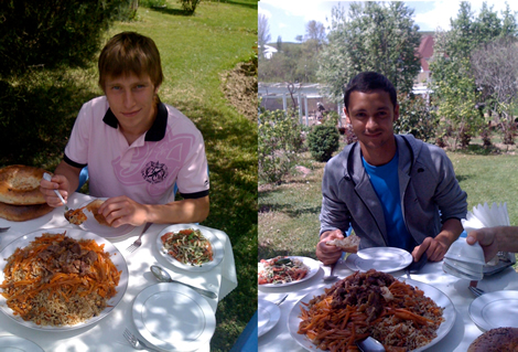 Плов в гостях у Фатхулло Фатхуллоева Саше и Олегу пришелся по вкусу.