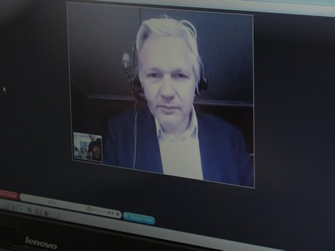 После подписания соглашения в редакции прошла онлайн беседа с основателем сайта Джулианом Ассанжем, который находится под домашним арестом и проживает в доме своего друга в одной из английских провинций.