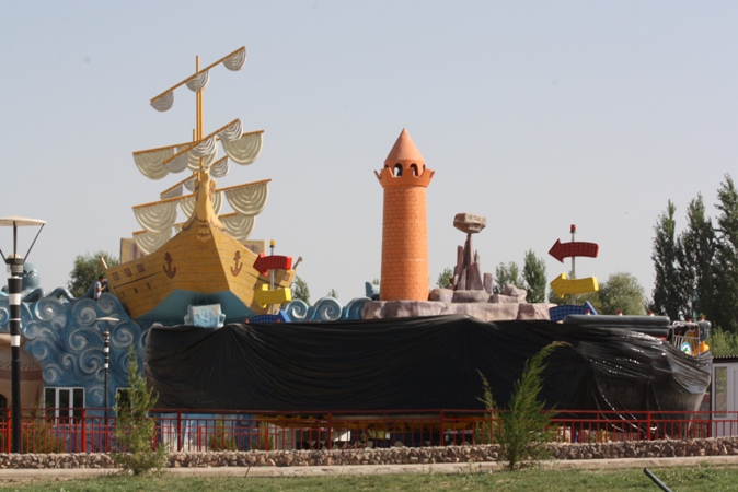 САМЫМ ярким примером, в буквальном смысле, являются новый развлекательный парк «Боги Пойтахт» и его аттракционы. Официальное открытие парка состоялось 6 сентября. На церемонии открытия говорилось, что парк состоит из развлекательных комплексов, амфитеатра на 1080 посадочных мест, сказочной крепости, плавательных и ландшафтных бассейнов, а также бассейна аквапарка, фонтанов со светомузыкой, различных спортплощадок для тенниса, баскетбола, волейбола, гандбола, мини-футбола, шахматного и бильярдного залов, аттракционов. Для жителей столицы это было действительно событием, так как, по сути, развлекательных мест для детей в столице очень мало. Однако сегодня из 33 аттракционов парка смонтированы только 16, но и они не работают, так как мэрия пока не установила тарифы на их использование.