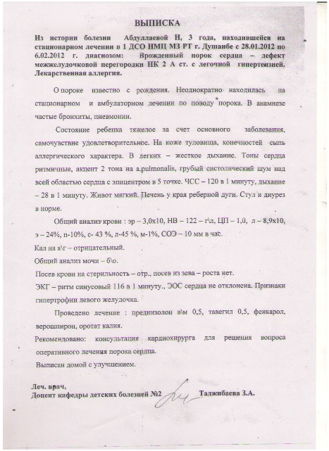 Нашей младшей дочери 3 года, она страдает от врожденного порока сердца – дефект межжелудочковой перегородки НК 2 А ст. с легочной гипертензией.