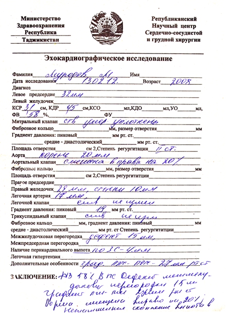 Но сейчас у нас уже нет времени ждать, у Мурода начала деформироваться грудная клетка, его состояние ухудшается с каждым днем.