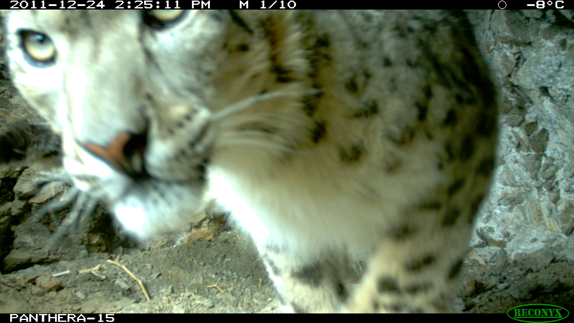 В период с ноября 2011 по апрель 2012 в общей сложности были установлены 13 фотоловушек, предоставленных фондом «Пантера», специализирующимся на охране животных семейства кошачьих. Девять фотоловушек зафиксировали наличие трудноуловимого животного — снежного барса. Полученные снимки подтверждают наличие 6 барсов, двое из которых — самка и барсенок. Большинство фотографий были сделаны в декабре и январе фотокамерой, размещенной на нижнем склоне и поблизости от того места, где пасутся козероги — основная добыча барсов. Зимой, поскольку снег покрывает верхние склоны, козероги спускаются ниже. Хищники следуют за ними.