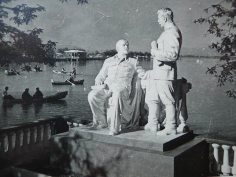 1951 год. Памятник В.И. Ленину и И.В. Сталину, установленный на Комсомольском озере. Постамент, на котором был установлен памятник, до сих пор стоит на своем месте.