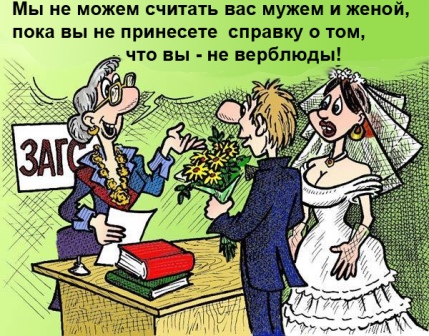 «Традиционная торжественная регистрация брака входит в компетенцию сотрудников отделов ЗАГСа. А причем тут само торжество, угощения, обслуживание, домком? Зачем создавать преграды для новобрачных в самом начале их семейного пути? А если они не готовы к мучительным походам за справками и доказыванию, что они «не верблюды», то, наверное, лучше жить в незарегистрированном браке?» –недоумевают они.