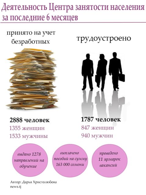 За последние 6 месяцев при помощи Центра занятости населения были трудоустроены 1 тыс. 787 человек, из них 847 женщин.