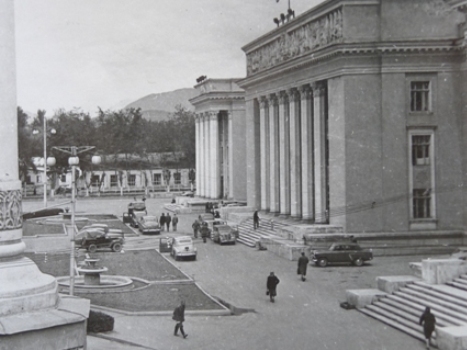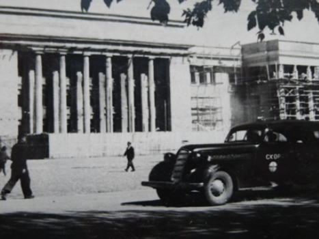 1946 год. Завершается строительство Дома правительства Таджикской ССР. Интересная деталь – карета «скорой помощи» тех далеких лет – автомобиль ГАЗ М 1, прозванный в народе «эмкой».