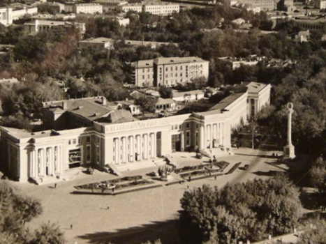 Для его строительства был выбран участок в центральной части города — на улице им. Ленина (Рудаки). В проекте была предусмотрена площадь для проведения демонстраций и военных парадов в дни общенародных праздников. Здесь предполагалось образовать общественный центр и положить начало новому архитектурному облику города. Строительство здания пришлось на военные и послевоенные годы (1940 -1946).