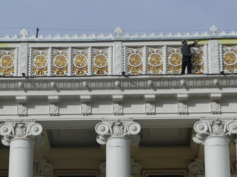 Фасад Театра оперы и балета им. С.Айни. Всю эту замечательную красоту фасадного декора театра создала для нас женщина-скульптор Елена Алексеевна Татаринова.