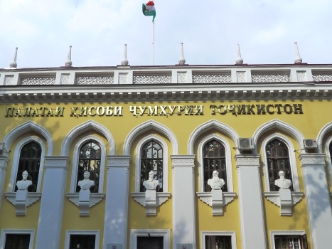 2013 год. Здание, построенное специально для Республиканской библиотеки им. Фирдавси (архитектор С.Л.Анисимов), с установленными скульптурными бюстами великих таджикских, русских, украинских классиков литературы работы скульптора Е.А. Татариновой. Сейчас здесь размещена Счетная палата Республики Таджикистан. Единственное, что диссонирует, мешает восприятию этих скульптурных украшений здания — кондиционеры, установленные на фасаде.
