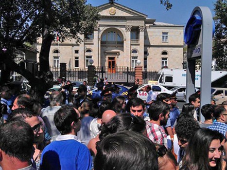Перед резиденцией президента Армении накануне прошла акция протеста, участники которой заявляют, что они против подписанного в Москве президентом Сержем Саргсяном заявления о готовности присоединиться к Таможенному союзу.