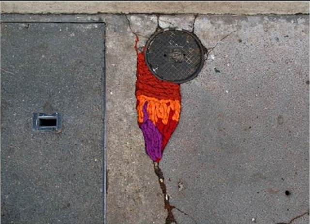 Видимо, Эррера очень любит вязать. И, надо сказать, у нее это отлично получается. Потому что разноцветные заглушки для дырок в асфальте эта художница именно связала. В итоге проблемные, разбитые дороги превратились в самые настоящие произведения искусства, яркие и необычные!
