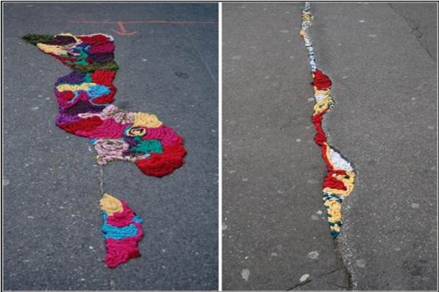 Видимо, Эррера очень любит вязать. И, надо сказать, у нее это отлично получается. Потому что разноцветные заглушки для дырок в асфальте эта художница именно связала. В итоге проблемные, разбитые дороги превратились в самые настоящие произведения искусства, яркие и необычные!
