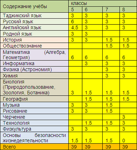 Исходя из этих замечаний и предложений, можно предложить следующую сетку часов для 5–8-х классов средней школы: