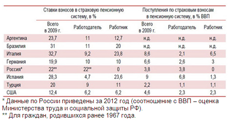 Ставки страховых взносов в солидарную пенсионную систему и соотношение в 2009 году поступлений по страховым взносам с ВВП