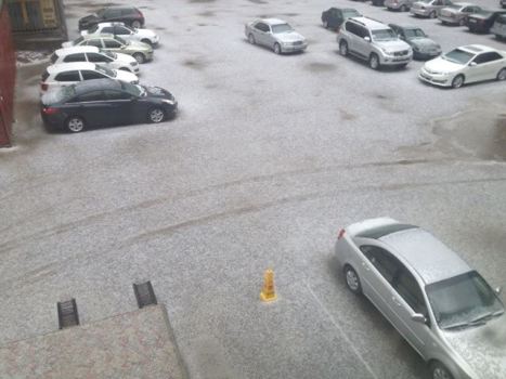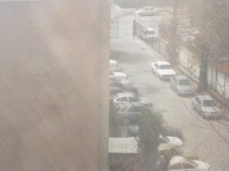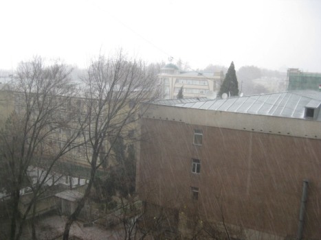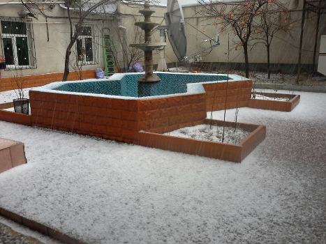 Гром, молния и град в декабрьском Душанбе (фото)