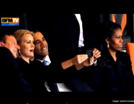 Кроме того, во время прощания с Нельсоном Манделой президент США и премьер-министр Великобритании Дэвид Кэмерон сфотографировались на фронтальную камеру смартфона премьера Дании Хелле Торнинг-Шмидт, сделав так называемое селфи (то есть фотографии самого себя).