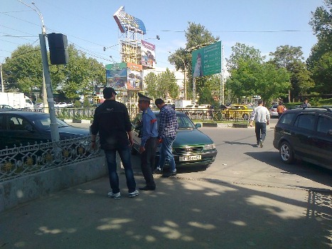 Первые фотографии сделаны на перекрестке у базара «Султони Кабир». На них четко видна работа инспектора ГАИ, а вернее, его бездействие по отношению к нарушителям, мало того, он сам создает аварийные ситуации на дороге, беседуя со своим знакомым, который проезжал мимо на своем авто. Я засекал время, они беседовали ровно семь минут…» — читатель «АП».