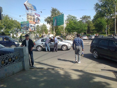 «Уважаемая рубрика «Дежурный по городу». Каждый день наши жители и гости столицы, сталкиваются с проблемой при движении в качестве пешехода по проезжей части дорожного полотна от перекрёстка с ул. Чехова (школа №35) по ул. Адхамова (бывшая Попова) мимо перекрёстка на гор. ГАИ, в сторону чулочно-носочной фабрики «Нафиса» на пр. Айни.