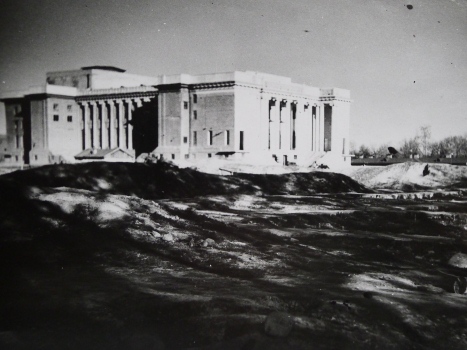 Сталинабад, весна 1945 года. Театр оперы и балета имени С. Айни. Архитекторы — А. А. Юнгер, Д. И. Билибин, В. Голли, художник С. Е. Захаров.