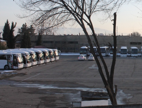 На стоянках терминала нет автобусов и такси компании Asian Express. Как оказалось, все автобусы и такси были перегнаны в таксомоторное предприятие №1 на окраине города Душанбе. Все автобусы компании проходят техосмотр – готовясь к зимним условиям и режиму работы.