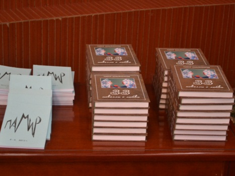 На приеме были выставлены для продажи книги Зульфикарова — «Памир» и «33 новеллы о любви»