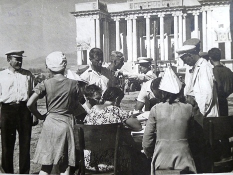 Сталинабад, 6 сентября 1947 года. Добровольцы записываются на работы, связанные с обустройством площади у театра оперы и балета.