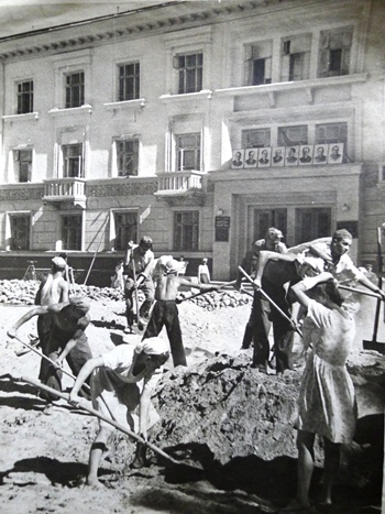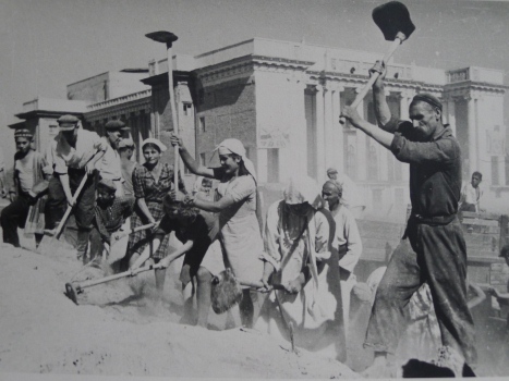 Сталинабад, утро 6 сентября 1947 года. Студенты Таджикского государственного медицинского института на строительстве площади имени 800-летия Москвы.